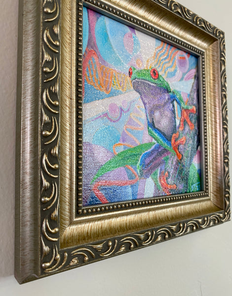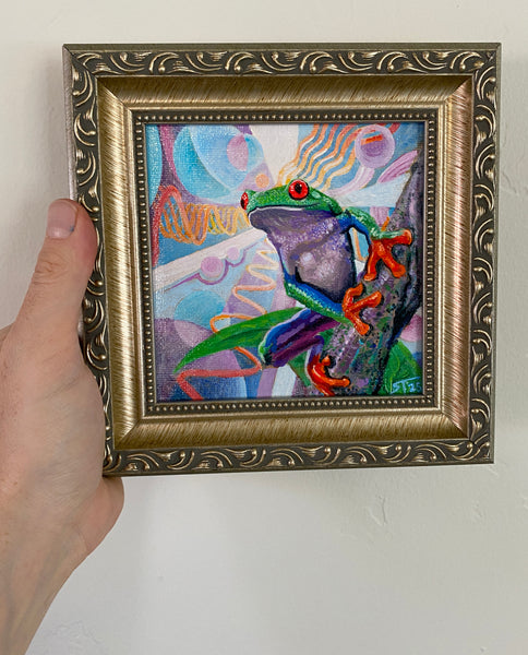 Froggy Thoughts, acrylics on canvas, 5x5", 2025.